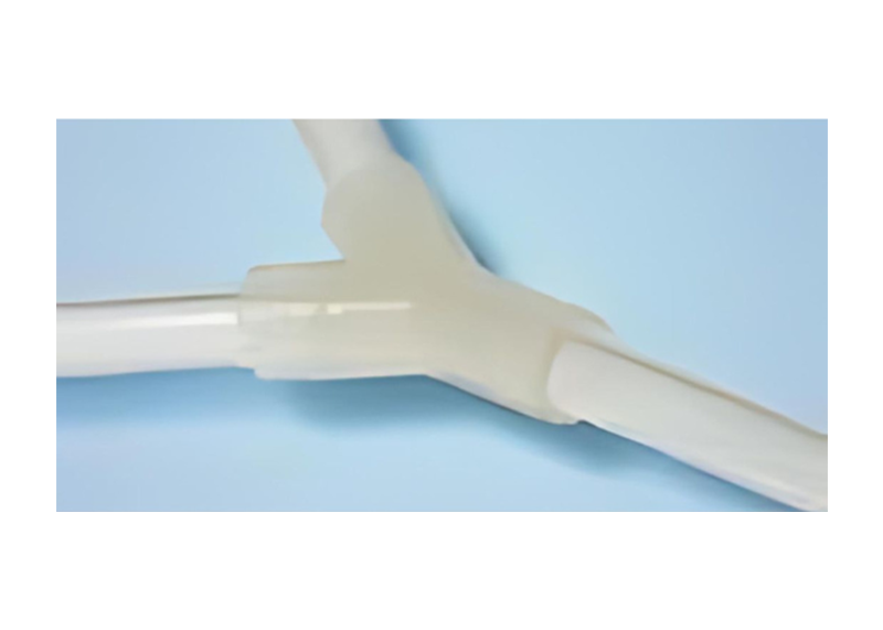 Blends or divides fluid path.Overmolding holds tubing shape and maintains consistentfluid path through junction